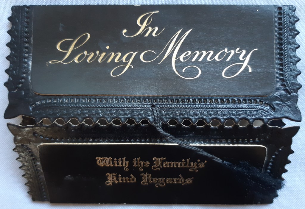 I have a long-held fascination with mourning and funeral cards, accumulating stacks of cards and letters, expressing grief and love for those who are total strangers today. Many cards are advertised on collectors’ markets, sold on the beauty of their design alone. While a pierced-paper angel may be a stunning display piece, the people and stories behind the cards are a much-neglected resource.