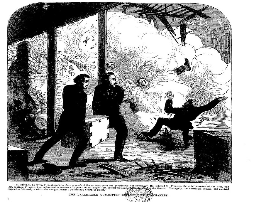 The cause of the explosions remains a point of contention. They may have been sulphuric acid willingly added to the product, the combustion of several tonnes of guncotton due to the summer heat or simply a tragic result of poor health and safety. Whether it was a wilful or accidental act was unclear at the time and suspicions were rife. The British Government issued a reward for £100 for any information, yet no leads came forwards and the reward is still unclaimed.