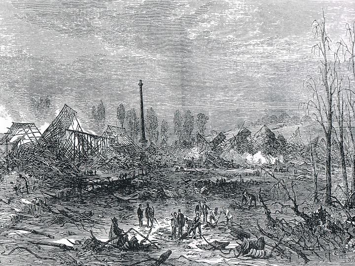 The ‘Stowmarket Guncotton Explosion’ was in fact two large explosions, that ripped through the Prentice’s Guncotton Factory in Stowmarket, Suffolk. The explosions were so incredibly loud that the sound rattled the windows of houses thirty miles away. The nearby railway line was completely ripped from the ground and over 188 cases of deafness were reported.