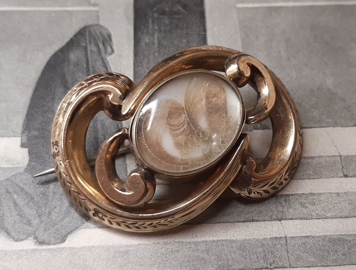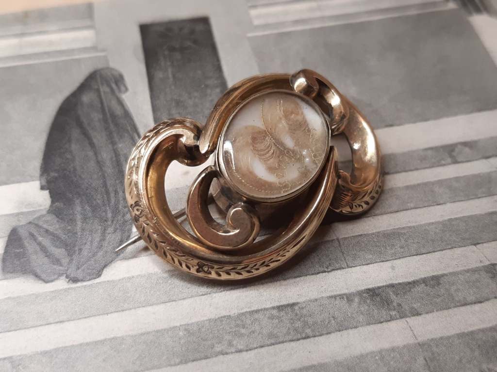 ‘A stunning example of a mourning brooch made from 9ct yellow gold (not hallmarked, acid tests as 9ct).