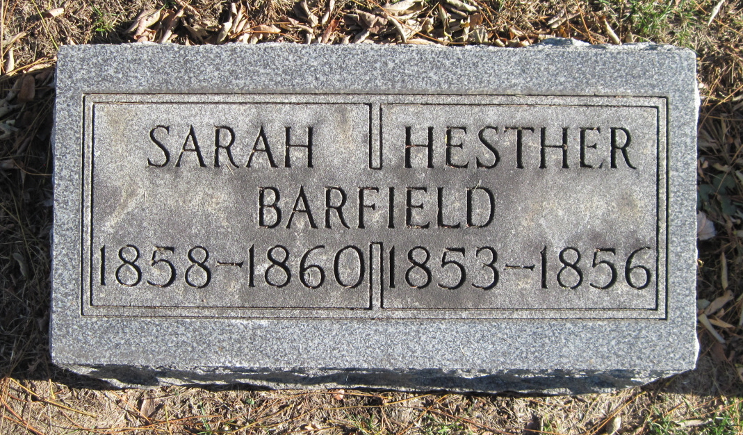 Sarah Barfield was born to the couple in 1858 and died aged 3, joining her sister in the same plot.