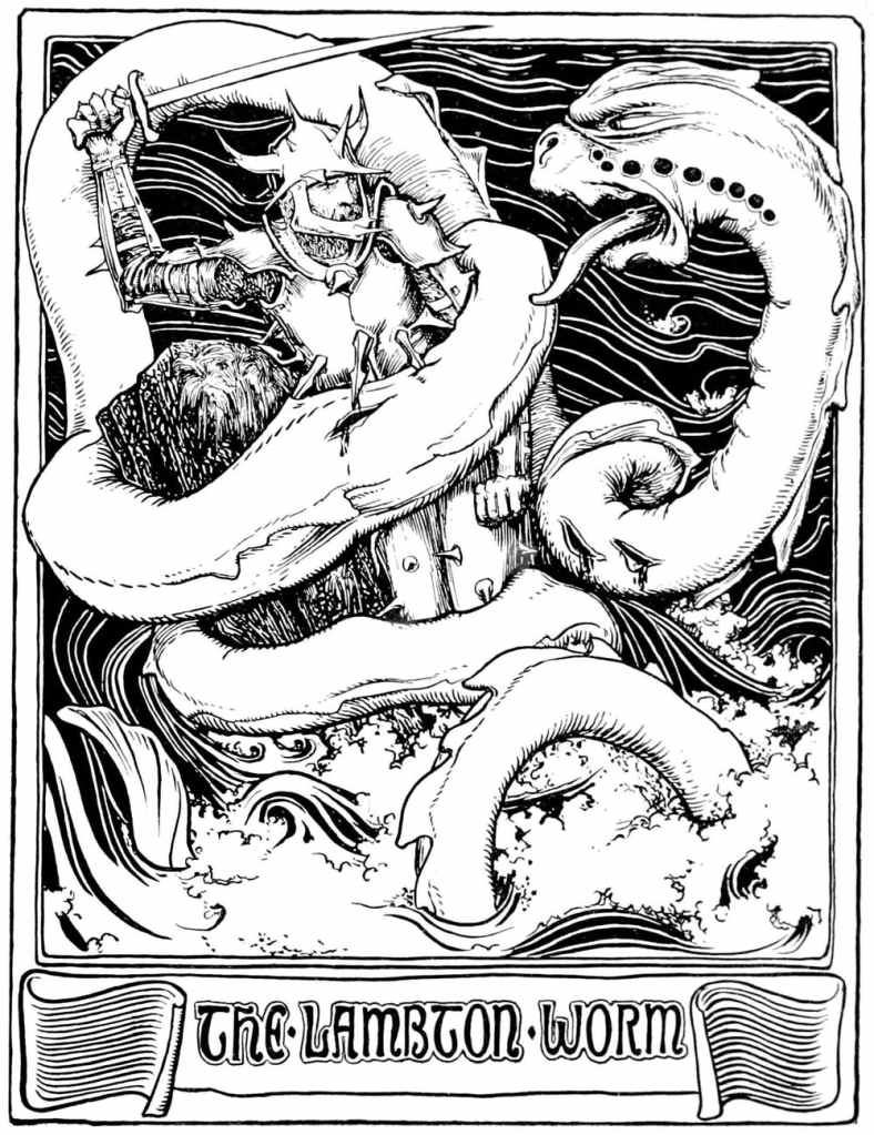 The worm’s attacks continued for several years, during which young John was away fighting on the continent, ignorantas to the terror that had struck his hometown. Upon his return, he found his father’s estate in ruins and the worm on the rampage. Travelling to Durham, young John sought the advice of a wise woman or witch, believing her arcane knowledge to assist him in his church-skipping-demonic-worm-problem.