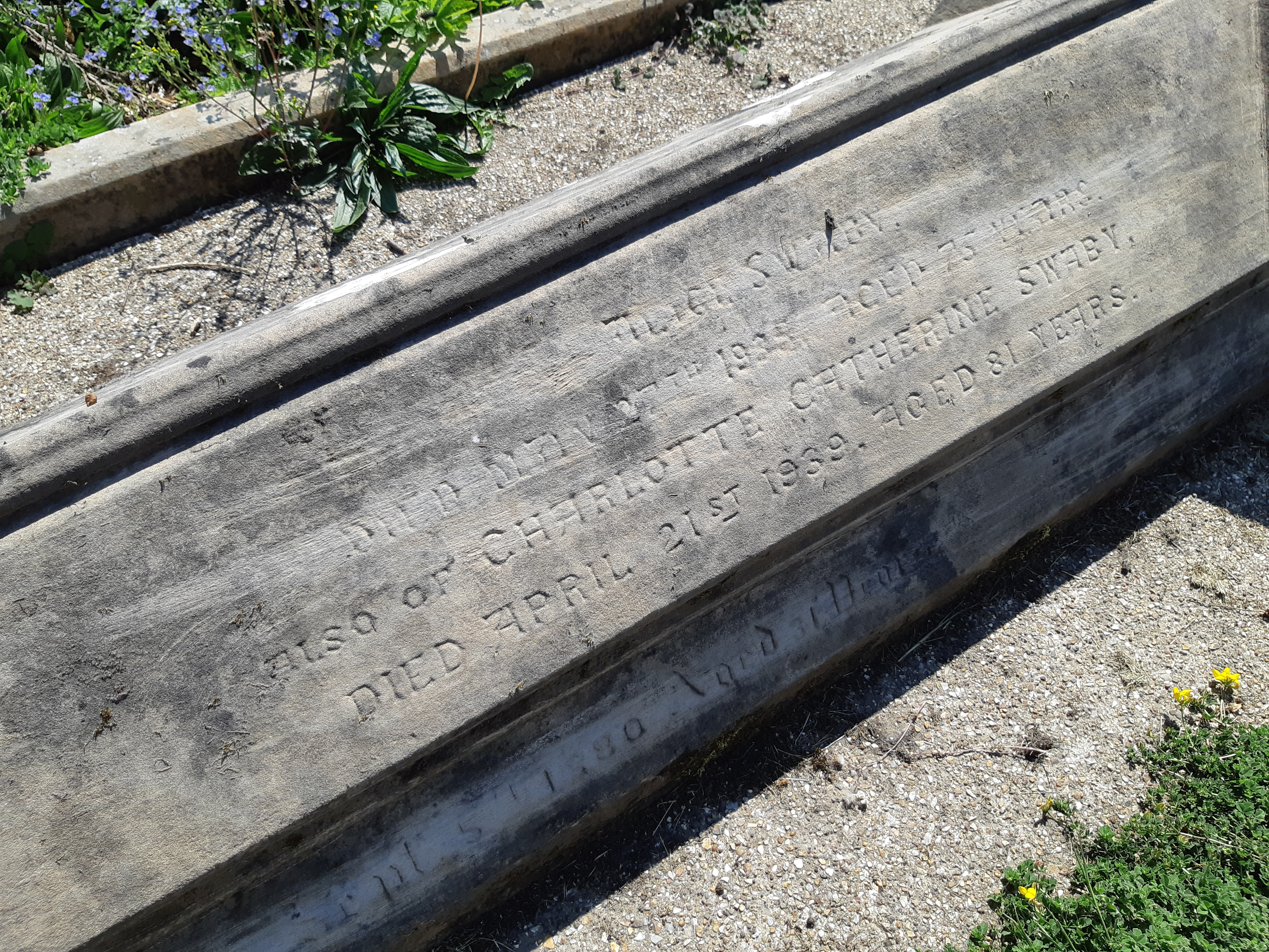 One unexpected treat found within one corner of the cemetery was on the grave of Mary Ann and Charles Shaw. A ceramic immortelle, although chipped and faded, was resting at the foot of their levelled headstone.