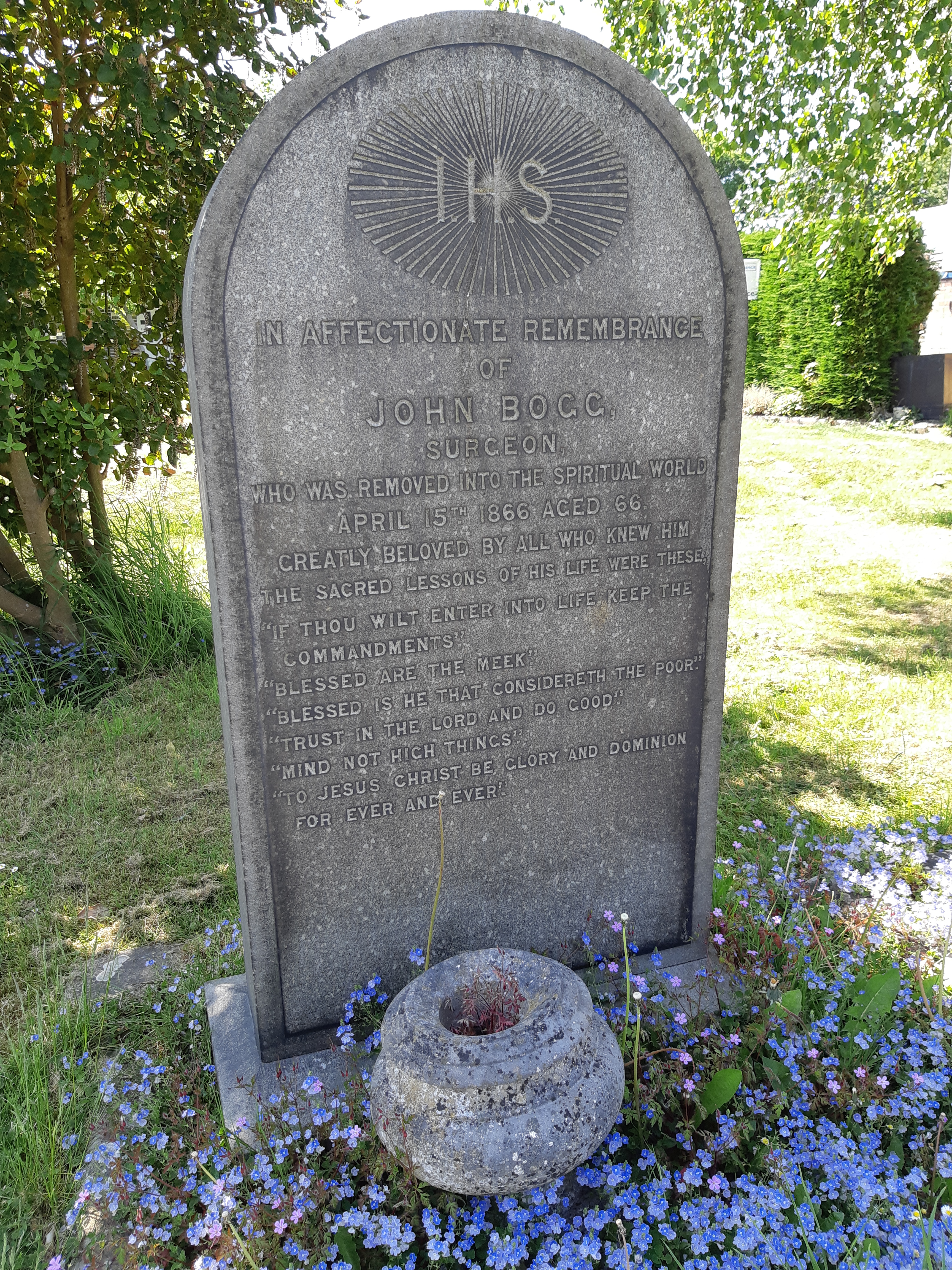 Surgeon John Bogg’s headstone it imposing in its size, preservation and quantity of text.