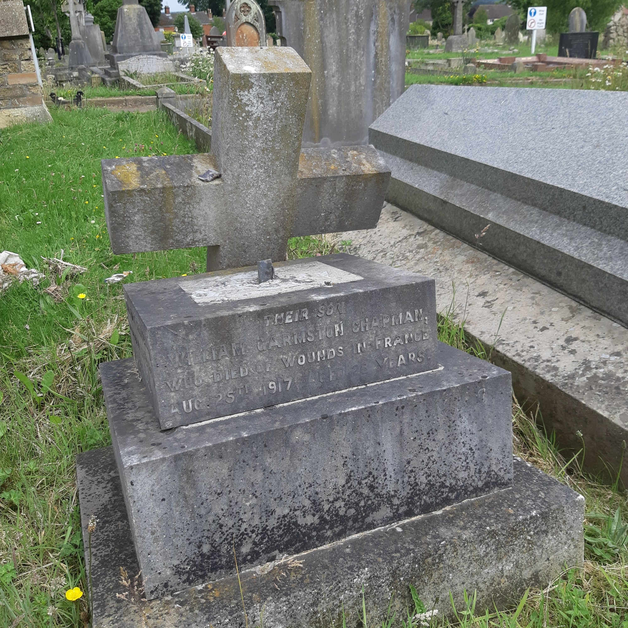 Another issue that blighted my last visit was an ethically contentious one. Should one have a passion for history, memorials and one’s local area, it may be tempting to see a weathered stone, dulled and covered in mossy patches, and take it upon yourself to scratch away the lichen. However, this effort, however pure in intent, ultimately damages the stone, the structural integrity and the further longevity of any carvings. The same principal applies to those who use harsh industrial cleaning fluids in a well-meaning attempt to revitalise graves; what initially appears as visually beneficial will ultimately cause immense damage to the headstone itself and potentially, the local ecosystem. In many cemeteries with more staff or conservationists at hand, special cleaning methods are employed to clear and preserve stones, without any damage to the monument itself. Sadly, scattered throughout the older section of Louth cemetery were many graves that rough low-grade sandpaper had scratched over the names of the grave owners. As pure in intent as such an act is, furiously scratching porous stone is counterproductive to any preservation attempt.