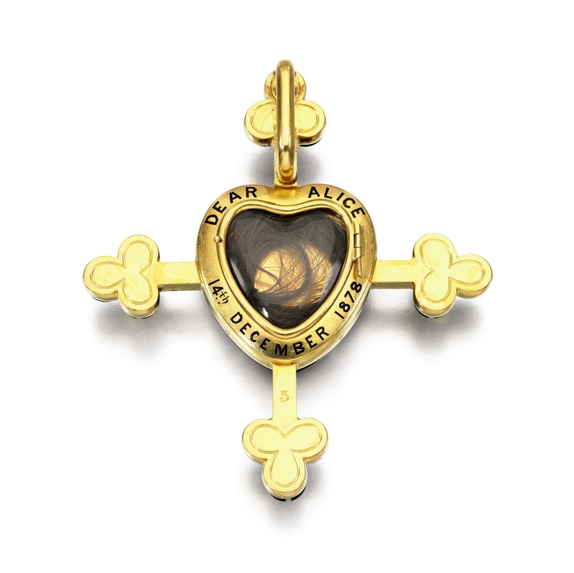 This pendant was commissioned by Victoria on the death of her daughter Alice, but also to memorialise the death of her granddaughter Marie, who died of diphtheria along with her mother that same year. (Keep it light!)