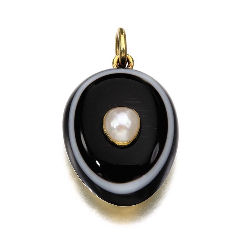 Banded Agate and Pearl Pendant, circa 1878