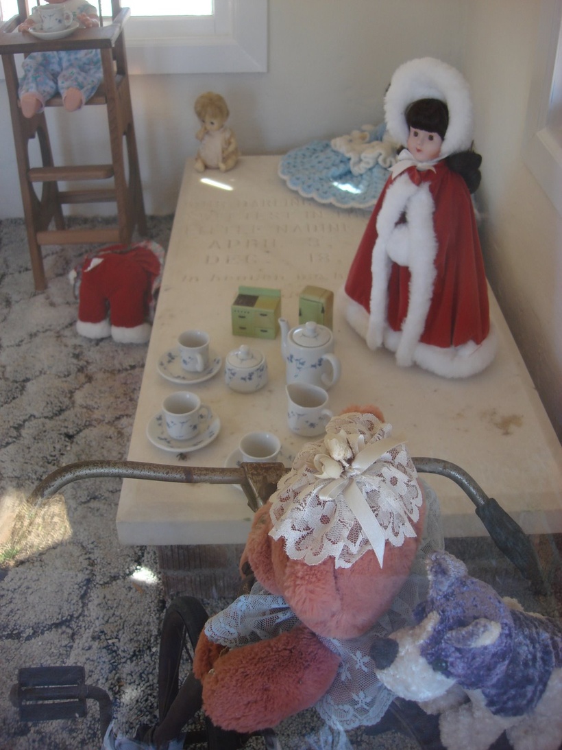 Dorothy is buried in Medina, Tennessee but was never a resident. As her family travelled upstate to find work, Dorothy became ill and died of measles, leaving the family with little choice but to bury her in an unfamiliar town and move on with their journey. To support the poor and grieving family, the townsfolk banded together and had the young child buried with a headstone and eventually, a small dollhouse to keep her company.