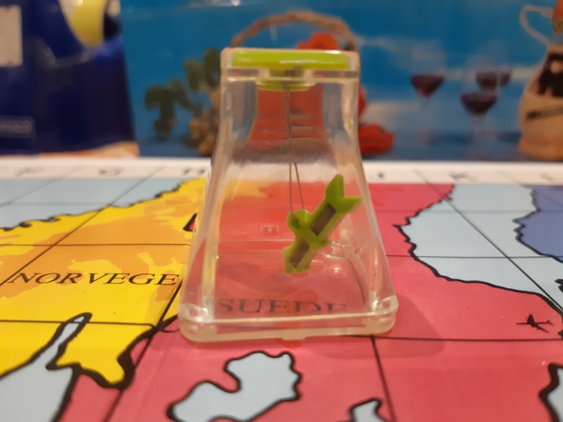 Players move their pieces, called ‘Sensotrons’ (definitely not a sexy robot) around a grid map of Europe, searching for the secret location of concealed shipwrecks, treasure and minerals. This hunt is aided by magnets, both in the board, and suspended within the hanging arrows of the Sensotrons. The magnets within the game shift with each opening of the board, so there’s little chance of repetition in gameplay.
