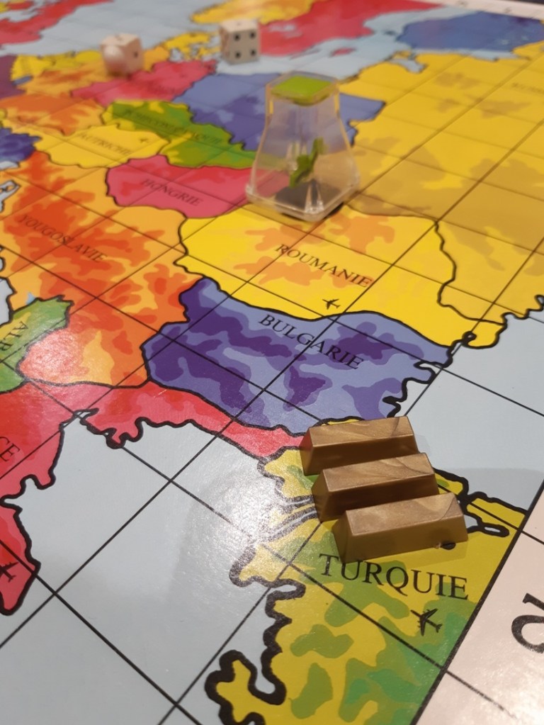 Excited to begin play, I unfold the board and realise the entre thing is printed in French. I top up my wine and pretend to have listened in school.