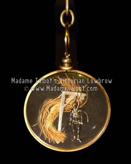 Speaking of hangmen, does one exist from William Marwood, Lincolnshire’s finest hangman? You bet your gruesome little heart it does. A hangman’s locket prepared by William Marwood has been recorded in the personal collection of ‘Madame Talbot’. According to Talbot, the rope included in the locket dates from 1875 – 7 years after the abolition of public hangings – and was used to hang six victims in that same year.