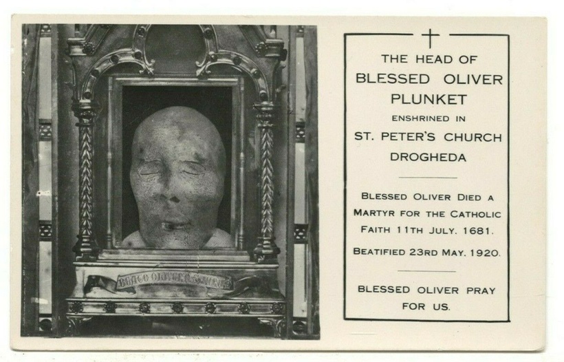 The head of blessed Oliver Plunkett can be found enshrined in St. Peter’s Church, Drogheda, Ireland. Like so many of these posts, I was introduced to the late Sir Oliver through some unhinged internet searches and a strange postcard in a junk shop.