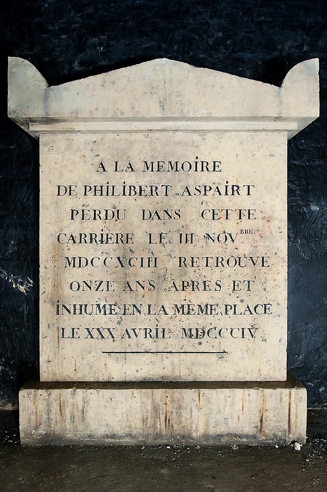 TO THE MEMORY OF PHILIBERT ASPAIRT, LOST IN THIS QUARRY ON 3 NOVEMBER 1793; FOUND ELEVEN YEARS LATER AND BURIED IN THE SAME PLACE ON 30 APRIL 1804.