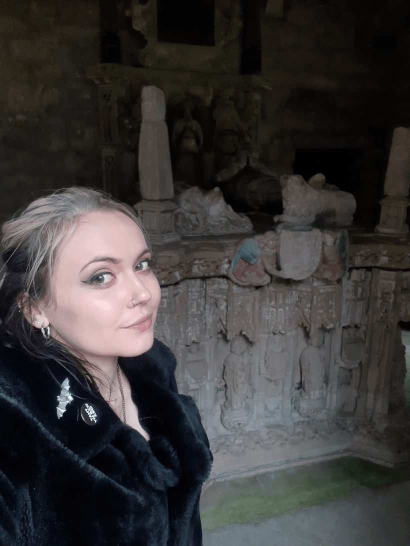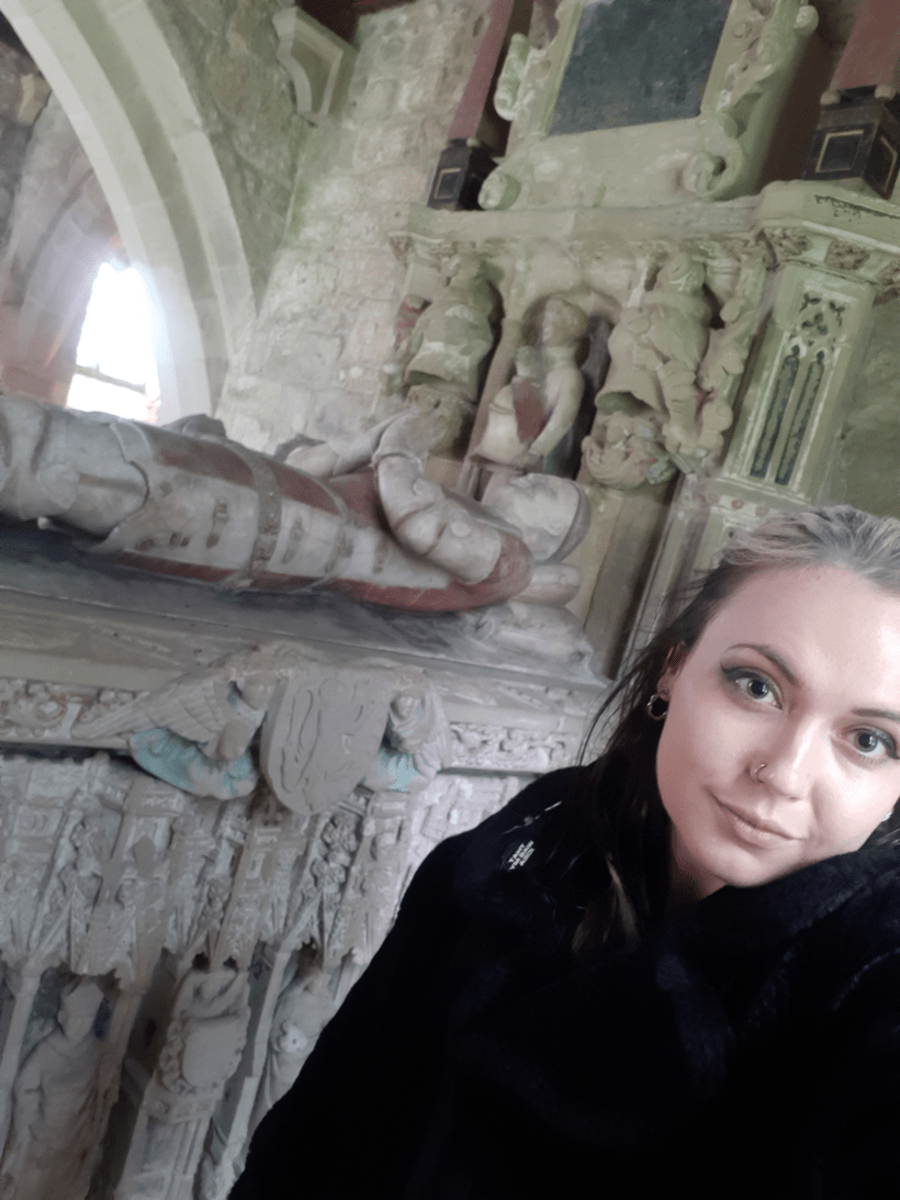 However, windows and bat poo aside, the most staggering feature of St Peter’s church is the enormous tomb of Sir Ralph Grey (b. 1406 d. 1443) and his wife Elizabeth Montfort (d. after 1453). This grand tomb features the life-size effigies of Grey and his wife, surrounded by angels and heraldic symbols, with the whole sculpture elevated as though they were resting on a joint death-bed.
