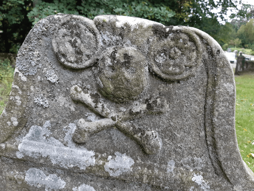 The churchyard at Chillingham is still open to local burials, which are to be found at the back of the church. The historical burials that interest tourists and taphophiles are found to the sides of the church, where substantial and striking examples of 18th and 19th gravestones can be found.