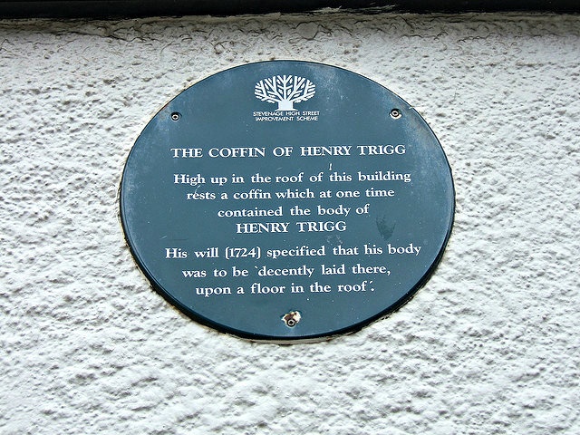 By 1999, the NatWest bank moved into Trigg’s old premises and demanded that the coffin be removed during renovations. Not only that, but any remaining human bones should be buried appropriately. It doesn’t seem to have been reported whether or not any of Trigg’s bones remained, but the empty coffin was duly placed back in the rafters as a local curiosity and a plaque placed outside to commemorate the strange story.