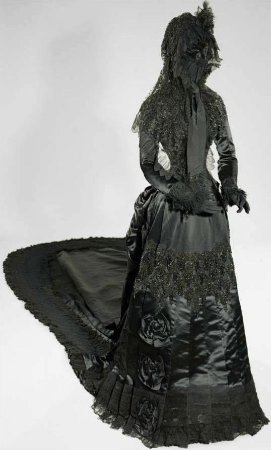 It was when grieving for Rufolf, that her most famous mourning dress was created. The dress and mask was designed by her favourite dressmaker Fanni Scheiner and is an enormous mass of velvet, lace, French jet glass beads and ostrich feathers. She displayed herself as grief personified and never recovered from the death of her son. Many claim that, like Queen Victoria, she never wore colour again. The preservation and celebration of her mourning clothing seems somewhat fitting for a woman with such a sorrowful life.