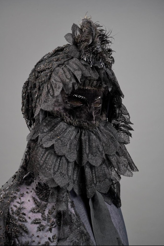 I’m no stranger to mourning clothing, nor do the rituals of grief and sorrow surprise me, but occasionally something will stop me in my tracks. The mourning mask and veil of Austria’s Empress Elisabeth is one such item.