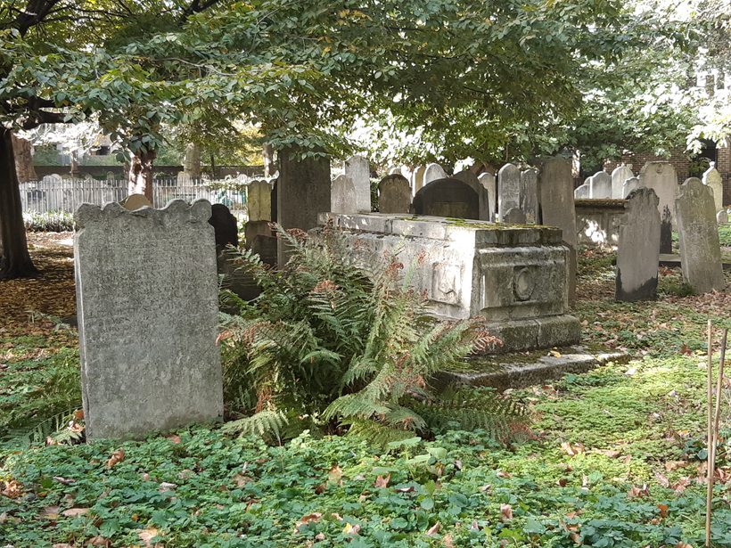 To many city workers, Bunhill Fields is just another thoroughfare. A place to sit during your lunchbreak, or a handy shortcut across Islington. At all hours of the day, the central paths are packed with power-walking bankers, suited office workers and exhausted couriers. For such a busy place, it holds little interest for most, and stopping to examine the odd grave is sure to incite quizzical looks from passers-by. The normality and mundanity of Bunhill Fields is understandable; seeing a location so often would stop anyone from looking outside its functionality.