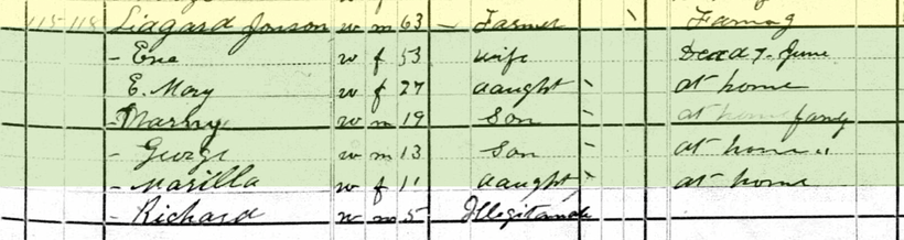 Sarah died in 1846 and was buried at Normanby, but Johnson was never to join her. By 1860 he had made the long journey to the new world and was living in Indian Creek, Pulaski, Indiana. Lidgard was a farmer with a new wife, Eva and four children, all of whom were born in England. It seems that Johnson went to join his brothers Solomon and William, the former of which had set sail from Hull in 1832/3 and settled in Indiana, working as a farmer, despite being a tailor beforehand. Johnson died in 1880 and is buried in Indian Creek, Indiana, having been recorded as ‘sick’ in the census of the same year.