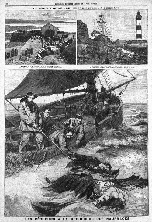 Colour me stupid, but my first thought was a lake or a body of water near a literal castle…such as the 15th century Drummond Castle in Perthshire. Instead, he was referring to the SS Drummond Castle, built in 1881 and which ran aground and sank in 1896. The ship departed Cape Town on 28th May 1896, heading for London with 143 passengers and 102 staff on board. At 11pm on 16th June, the ship struck rocks between Ushant and Molène and sank within 4 terrifying minutes. Of 245 souls on board, only three survived.