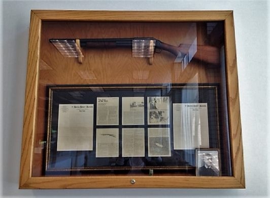 One member of the gang attempted to gain access by prying open one of the banks long windows, but before he could gain purchase – bang! Harry Tyler raised his sawn-off shotgun and fired at the intruder’s face. The rest of the gang scattered, leaving their friend behind, dead.