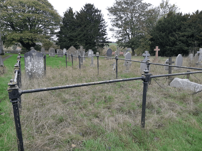 Curiously, one family plot is surrounded by railings, but is the strangest shape, looking rather like someone trying to push the boundaries of their neighbour’s property line, than a place for eternal rest.