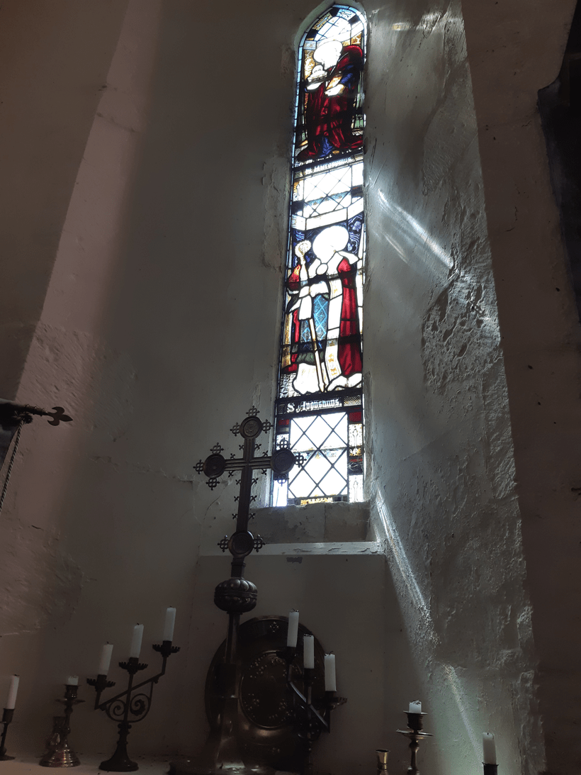 The tower is constructed from Jurassic limestone from the Lincoln Edge, and also shows strange colour differences on the south and west faces. Its here, where some stones appear reddish-brown, that the remnants of the Dane’s fire can be seen. These scorch marks have remained in Corringham for over 10 centuries, offering a tangible window to the precarity and violence of Lincolnshire’s past.