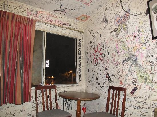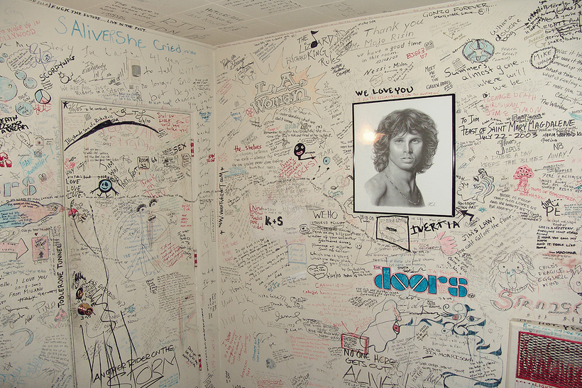 Following Morrison’s untimely death at the age of 27, room 32 of the motel became a ready-made shrine for American fans who mourned the death of their idol, thousands of miles away in a Parisian bathroom. Room 32 is regarded as the last place that Jim stayed before moving to France, so is understandably seen as the last tangible link to the singer. The motel owners ultimately opened their doors to Jim’s fans, who reappropriated the room’s purpose, filling its walls with scrawled messages of love, loss and remembrance. The shrine remained in use for decades, both as a place of memorial, and as a rentable room. Fans were encouraged to visit and leave a message, adding an interactive graffiti thrill to an otherwise unremarkable and grubby motel. Apparently, the Alta Cienaga would charge anything from $70-$160[1] to stay the night, and offered a visitor’s fee (if you just wanted to see the room) of a dollar a minute!