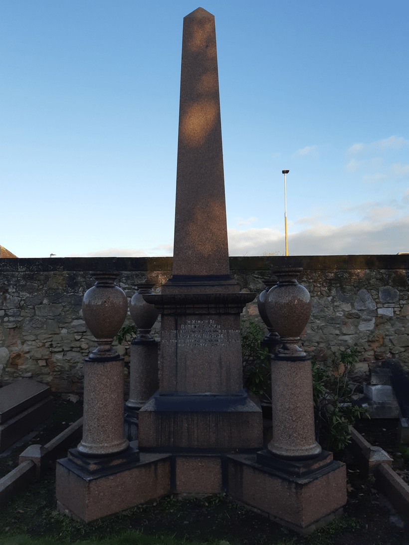 The Nisbet memorial is a veritable wall of text, with a great number of children recorded as dying in their infancy. Focusing on unusual jobs, Alexander Nisbet, patriarch, was named as a ‘salt manufacturer’ at Joppa Pans. Extracting salt isn’t as simple as digging it up, but was harvested via an industrial process. According to Portobello Heritage trust, “The production of salt by evaporating seawater gathered in large pans using coal from the shallow local mines had been carried on in Joppa since the 1630s, part of an extensive industry along both shores of the Firth of Forth… Late in the 19th century Joppa Salt Pans and the houses were taken over by the firm, Alex. Nisbet and Son, who also owned the salt pans at Prestonpans and Pinkie. They later formed The Scottish Salt Co. which went on producing salt at Joppa until 1953 when the last salter, Mr Towers retired.’