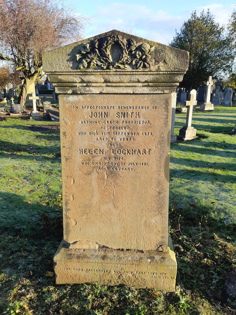 Other headstones feature occupations – one of my favourite things to spot. John Smith, who died on 22nd September 1879 aged 65, was a Bathing-Coach proprietor. ‘Bathing Coach’ would most likely refer to bathing machines used between the 18th and 20th centuries, which were huts on wheels, used at seaside resorts to allow people privacy to change into their bathing clothes, before slipping into the sub-zero temperatures off the Scottish coast. Bathing coaches were another fun relic of the complicated world of Victorian etiquette and ideas of decency.