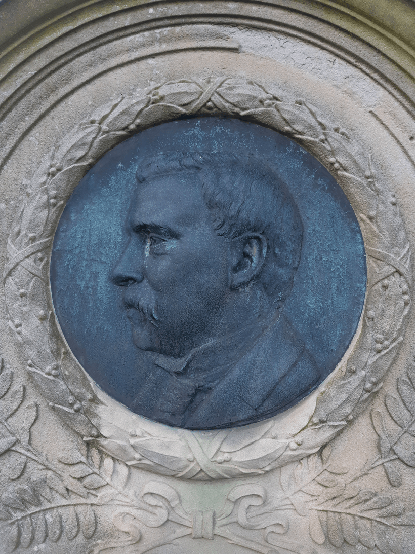 Towards the end of the older cemetery, a handful of opulent memorials stand out. One features a medallion with a likeness of a man’s face, memorialising a man with far too many letters after his name.
