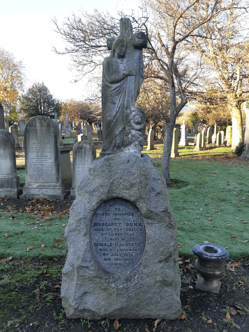 Other grand memorials include a huge pink granite affair by the outer wall, marking the grave of Robert Gibson, some fallen memorials to Robert Smith’s family, an enormous Celtic cross and a grave of Alfred Nichol and Mary Bevan.