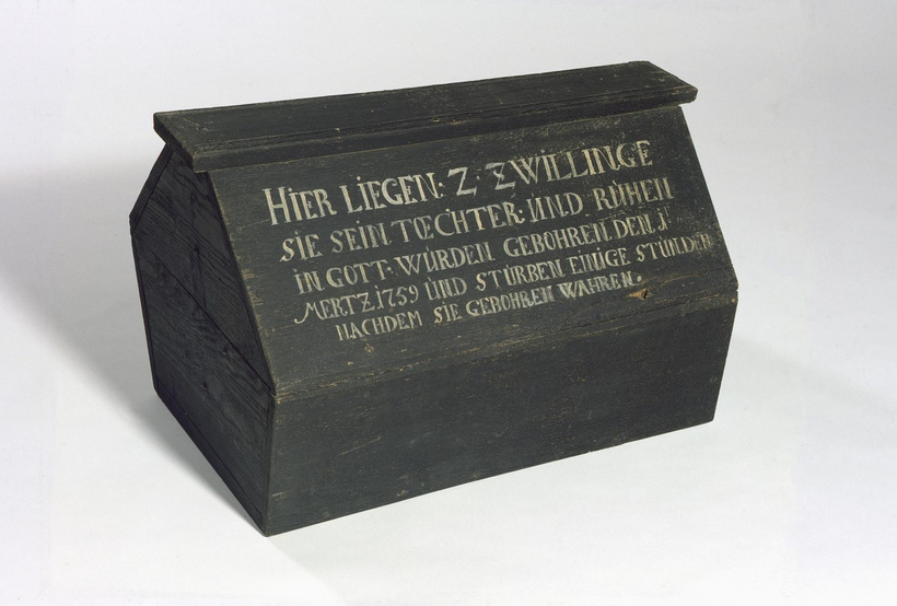Digging deeper into the museum collection, several items relating to the von Stockhausen family have been preserved. Sadly, many of these are relating to death; a large number of the Stockhausen coffins are in the museum’s possession.[6] In the museum’s mourning collection is a small, black, wooden coffin for the unnamed twin daughters of Anna Maria and her husband, Hans Ernst who died after only a few hours.[7] Similarly, Johanna and Hans’ coffins are in the museum collection, showing that Johanna was 4 years, 4 months and 3 days old at her death.[8]