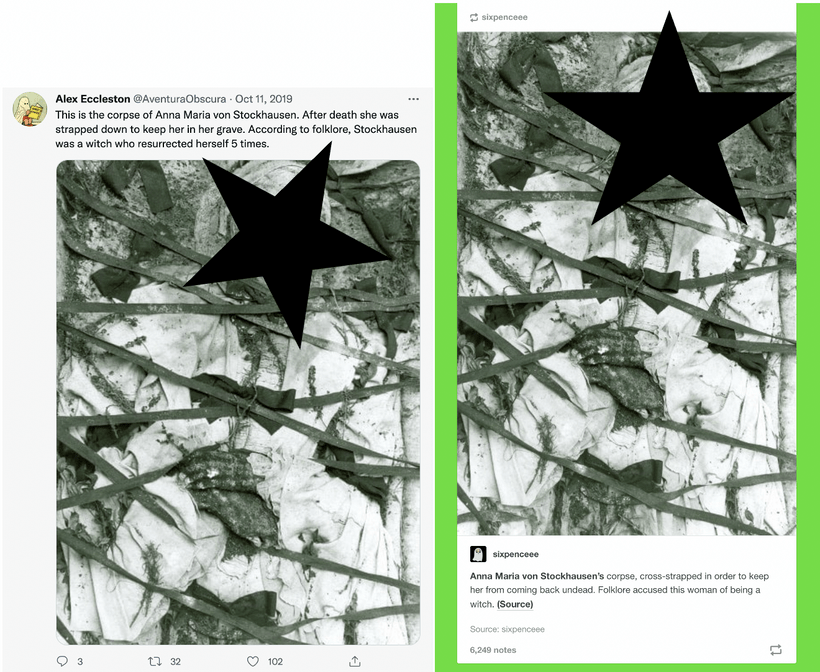 But Anna’s remains aren’t presented as a curious photograph of remains found long after her death, but are joined with similar statements that ensures a thousand retweets: