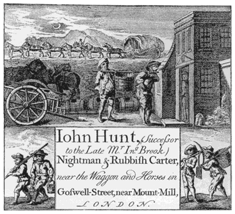 Topped with an image depicting two men handing the flyer to a woman in a bonnet at her front door, we can only hope that the men were successful in their requests. In the 19th century, waste removal services were operated differently to today; they weren’t council-run services, but private enterprise. Independent companies and individuals would offer their services to districts, ultimately retrieving their rubbish AND their sewage.