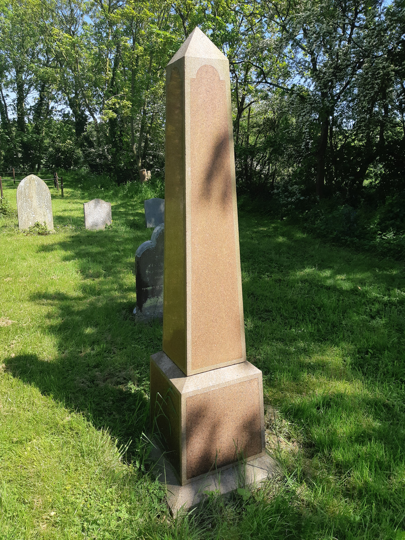For such a small churchyard, Linwood holds a variety of designs, including a pink granite miniature obelisk – the memorial to John Gothorp, who died in 1837 aged 64.