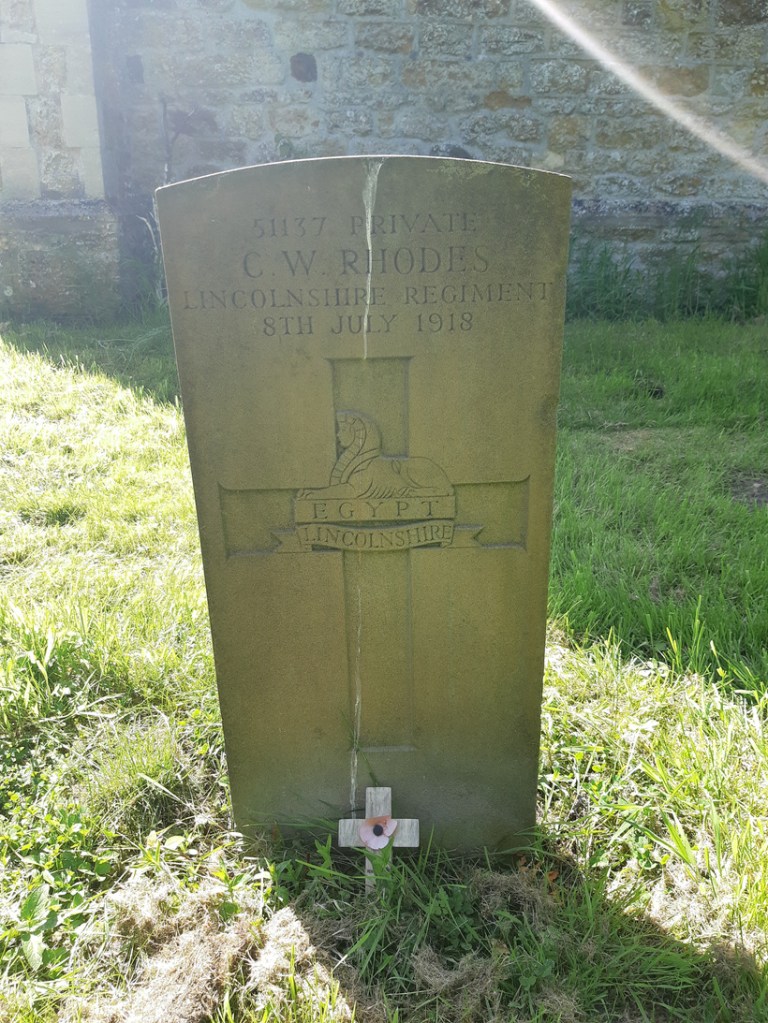 Linwood also has a handful of war graves, including those of Private C W Rhodes (51137) of the Lincolnshire regiment who died on 8th July 1918 and Squadron Leader David Walby R.A.F who died on 6th April 1993 aged 47. After a little press search, it seems that Walby instructed Prince Edward in a bulldog trainer aircraft in a 3-week course.
